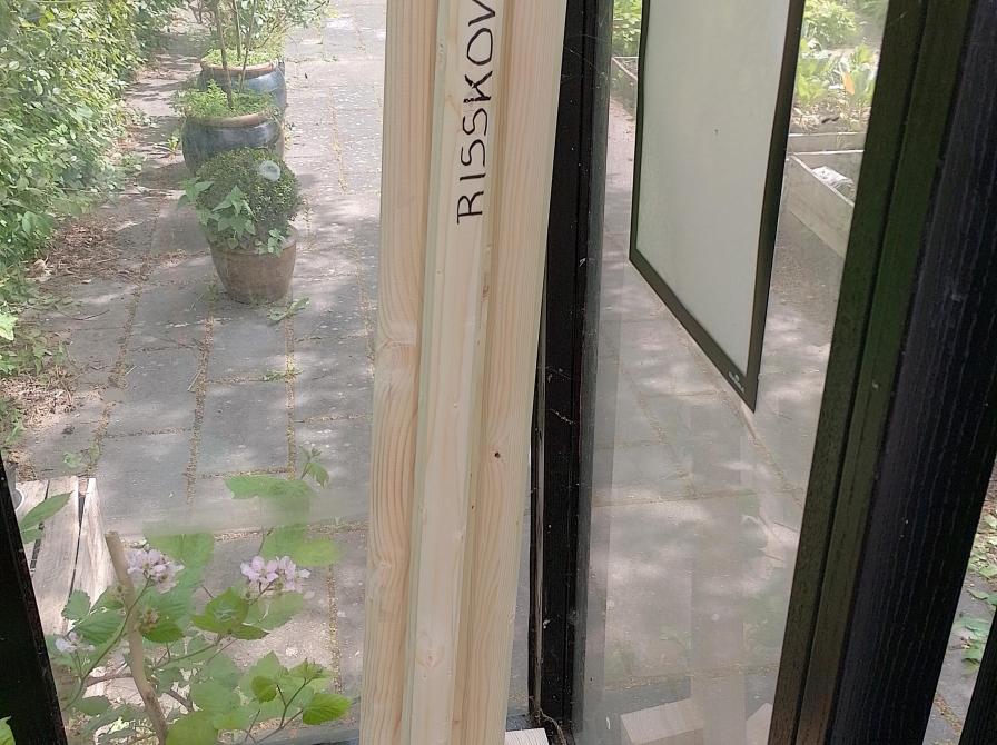 Bibliotekets stylterne har fået fast plads i drivhuset til fri afbenyttelse for besøgende. De skal også med til Åbent Hus i Vejlby Vest den 4. september, så de gør nytte.