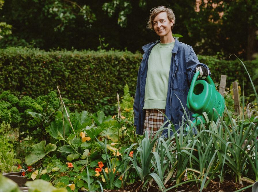 I haven er der adgang til vand, haveredskaber og mulighed for masser af hyggelig snak over havearbejdet.